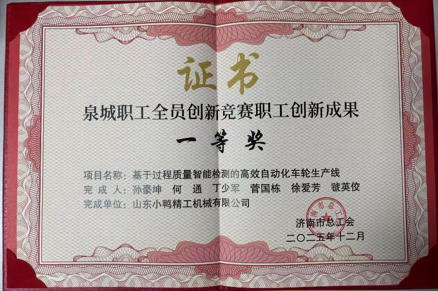 在近日公布的2025年度泉城职工全员创新竞赛获奖名单中,产发集团旗下小鸭精工机械、金钟科技集团凭借前瞻性的创新理念与实用价值,在众多参赛项目中脱颖而出,分别荣获一等奖、三等奖,展现了产发集团在高端智能制造领域的创新实力。