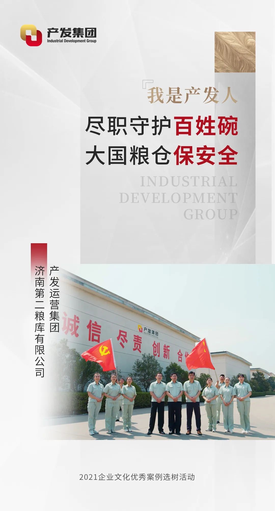储为国计,备为民生,粮安天下,为国储粮,责重如山。满怀信心的第二粮库人,将继续秉承“为耕者造福,为食者谋利”理念,始终践行集团诚信尽责的核心价值观,发挥勤奋敬业、扎实苦干精神,不断创新,开拓进取,做精主责主业,端牢中国饭碗,守好大国粮仓,为保障国家粮食安全砥砺奋进,贡献产发力量!